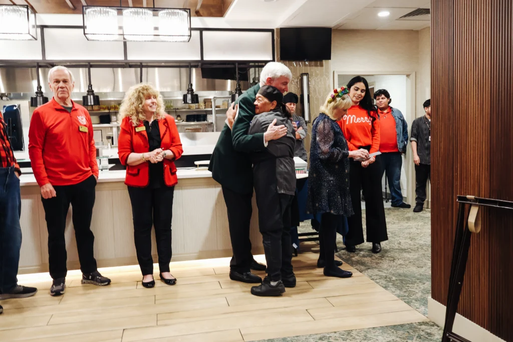 Each year, our residents contribute philanthropic dollars to support the Smith Fund, which is shared at the beginning of December among our non-director colleagues based on their hours worked during the previous year. (A much smaller distribution is also made in the spring.) It all culminates during a distribution day, where an assembly line of “handshakers and huggers” show gratitude and pass out checks. It is joyous and heartwarming, and it brings sweet tears. It is a favorite day of the year among both employees and residents. It re-emphasizes the meaning of the holiday season.