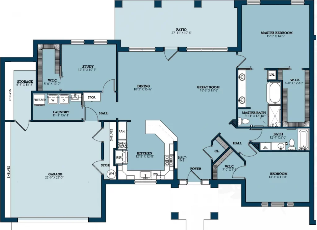 Delight in the luxury of our Lakeside Duplexes, ranging from 1,670 sq. ft. to 2,264 sq. ft., that offer a number of modern two-bedroom floor plans that seamlessly blend stylish kitchens with expansive living and dining areas. Perfect for senior living in San Antonio, our duplexes are meticulously designed, offering an array of contemporary design elements alongside standard features such as a spacious 2-car garage.
